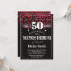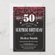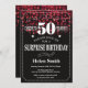 Red Glitter Surprise 50º Convite de Aniversário. Tipografia Branca. Fundo do quadro negro e branco. Aniversário Adulto. Homens ou Mulheres Aniversário. Meninos Meninos ou Meninas Meninas Meninas Adolescentes Convidam. 13 15 16º 18º 20 21rua 30 40º 50º 60º 80 de 70 100º. Qualquer Idade.