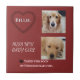 A warm and expressive memorial design created to honor pets lost to hemangiosarcoma. This layout features a muted deep red background with off‑white text and a soft halo effect for gentle readability. A paw‑print heart outline with your pet’s name sits across from the top photo, while two stacked photos appear on the right. To the left of the lower photo is the tender phrase “Miss you baby girl”, and along the bottom, a small paw icon leads into Taken too soon by hemangiosarcoma. The overall style is clean, modern, and heartfelt, creating a meaningful keepsake that blends remembrance with a warm, balanced visual layout perfect for display.