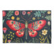 Uma mariposa Vermelha Vibrante ao fundo de um misterioso jardim noturno.