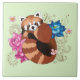 Um panda vermelho giro segurando a cauda. Flores lótus, flores de cereja e hena em um panda verde estão em volta do panda vermelho. Tudo desenhado no estilo da tatuagem.