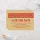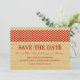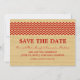 Moderna e moderna Rustic Chevron Salve o Anúncio de Data com uma arte digital impressa em fundo de madeira e um padrão zag de faixa vermelha escura. Esta design é perfeita para anunciar um casamento rústico mas elegante. Fácil de personalizar, simplesmente adicione seus detalhes de casamento. Clique em "Personalizar" para encontrar mais opções de personalização.