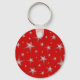 Design moderno com estrelas brilhantes, cintilantes, vermelhas e brancas sobre fundo vermelho. Chaveiro com um design personalizável vermelho e branco para você personalizar com seu próprio texto, imagens e ideias. Criado por Jess Perry usando fotografias originais e técnicas digitais.