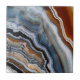 Esta é uma fatia multicolorida branca, preta, azul, cinza, laranja, dourada, marrom e terracota de fecho do geode agate.