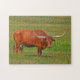 Red Texas Longhorn Cow em Pasture Quebra-cabeça