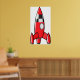 Um foguete de brinquedo vermelho pronto para explodir. Esta design parece realmente eficaz nestes Poster