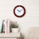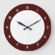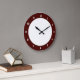 Números brancos com o relógio de parede redonda vermelho. Este trim vermelho é intercambiável ao transformá-lo em um relógio quadrado. Mantenha-o com o fundo branco ou adicione um fundo colorido. Adicione a sua foto ou design favorita atrás da imagem de trim. A maneira de fazer isso é garantir que sua foto seja mostrada abaixo do limite de imagem no lado direito quando você estiver personalizando.