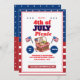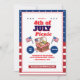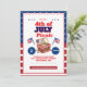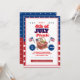 Vermelho, Branco e Azul 4 de julho, Convite Picnic! Perfeito para churrascos de quintal, biscoitos comunitários ou reuniões patrióticas de famílias, este convite festivo apresenta cores clássicas de Americana e elementos de design inspirados em piquenique que dão o tom para uma celebração com o spangled de estrelas.