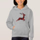 Esta camisola macia, quente e na moda de natal de uma menina apresenta uma rena voadora de xadrez vermelha e brilhante.