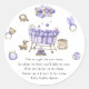 O convite mostra a aquarela de um berço bebê, um berçário móvel na forma de nuvens roxas redondas, brinquedos para crianças: um elefante roedor, um pato sobre rodas, um ursinho de pelúcia, um coelho, uma bíblia, um pacificador, uma pirâmide.