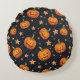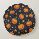 É uma almofada circular com o tema do Dia das Bruxas.