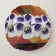 Flores brancas e roxas, amarelas, laranja, fundo vermelho. design de colagem de abstrato em almofada redonda.
