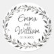 Grinalda desenhada elegante com nome e data mutáveis escritos para casamento.