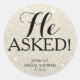 Chá de panela simples com fundo brilhante. Parte do que ele perguntou, ela disse que sim. Veja o adesivo correspondente abaixo. Altere o Fundo ou as cores do texto para se adequar à sua ocasião.