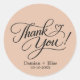 Um adesivo romântico e personalizado de “Obrigado!” com caligrafia fluida e elegante, com floreios delicados e um discreto acento em forma de coração. Personalizado com nomes e data, este design atemporal em preto e branco é perfeito para casamentos, noivados e celebrações especiais. Um toque final gracioso para o seu dia inesquecível.