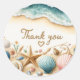 Diga obrigado com um toque de sol e brisa marítima! Este adesivo encantador com tema de praia apresenta delicadas conchas em uma costa arenosa — perfeito para adicionar um toque quente e costeiro a cartões de agradecimento, sacolas de presente, embalagens de pequenos negócios ou lembrancinhas de festa. Um pequeno lembrete de gratidão, envolto em serenidade à beira-mar.