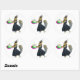 Um esquilo num vestido preto elegante segura um bolo de aniversário com uma vela acesa a solteiro. Um adesivo de aniversário divertido.