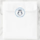Adicione um toque doce de inverno aos seus favores de chuvada de bebê com este adesivo redondo adorável com um pinguim bebê aquarelado e borda de flocos de neve azuis. Perfeito para selar sacos de favores, embrulhos de presentes ou envelopes, este adesivo combina perfeitamente com qualquer tema ártico ou de chuvada de bebê de inverno. Personalize com seu nome e data da chuvada.