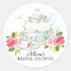 Adesivo de lembrança de chuveiro de noiva com chá bonito apresentando um bule de chá vintage e xícaras de chá com flores de aquarela rosa