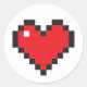 Redondo Adesivo de Coração de Pixel Vermelho