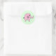 Este adesivo mostra uma ilustração de um elefante rosa giro em um fundo aqua pálido personalizável.