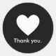 Embalagem simples e minimalista de produto preto e branco Obrigado adesivos. Selecione ''Editar usando a Ferramenta de Design'' para personalizá-la ainda mais.