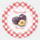 Adesivos retrorreflectores personalizáveis para compota de ameixa caseira, geleia, marmelada ou preserva frascos com ameixas frescas no padrão de toalha de gingham vermelho e branco. Podem ser presos na tampa ou no próprio boião e criar uma coleção personalizada. Outros adesivos de geleia de fruta também disponíveis!