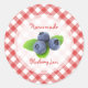 Adesivos retrorreflectores personalizáveis para compota de mirtilo caseira, geleia ou preserva frascos com mirtilos frescos no padrão de toalha de gingham vermelho e branco. Podem ser colados na tampa ou no próprio boião e ter uma coleção personalizada. Outros adesivos de geleia de fruta também disponíveis!
