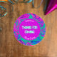 Minha filha e eu criamos este desenho de giro legal e descolado em rosa, roxo, azul e verde. Você pode personalizar este adesivo para uma lembrancinha divertida de agradecimento. Coloque o rótulo nas lembrancinhas da festa de slime com este adesivo para um presente de agradecimento fofo para seus convidados. "Obrigado por vir" está escrito em uma fonte divertida e editável. Isso combina com o convite para uma festa de aniversário de slime para meninas. Este desenho retrô ondulado e descolado é ótimo para uma vibe divertida. Todo o texto pode ser personalizado. Divirta-se.