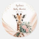 Redondo Adesivo de Favor de Chá de Bebê Safari Girafa Flor