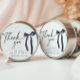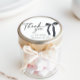 Adesivo de agradecimento em arco preto para um Chá de Noiva gótico. Perfeito para uma despedida de solteira com tema "Ela está dando o nó".