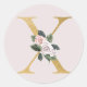 Redondo Adesivo de iniciais douradas de rosas da primavera