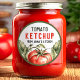 Adesivos editáveis de Ketchup de Tomate caseiro com ilustração de tomate aquarela. Crie seus próprios rótulos para suas receitas favoritas de tomate. Para usar na tampa do pote ou na lateral do frasco. Perfeito para conservas, presentes caseiros ou organizador da despensa da cozinha.