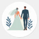 Inclui 20 adesivos pequenos em uma folha. Adesivo elegante e encantador com uma noiva e um noivo de mãos dadas, cercados por desenhos de folhas simples, perfeito para decoração de casamento.