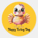 Uma imagem fofa de um peru bebê em um fundo amarelo é destaque neste adesivo redondo de Ação de Graças. Com a mensagem "Feliz Dia do Peru", torna isso ótimo para enviar aquele cartão especial de Ação de Graças, scrapbooking ou decoração!