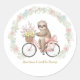Redondo Adesivo de Preguiça em Aquarela & Bicicleta Rosa