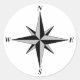 Adesivo branco com cinza e símbolo preto de bússola.