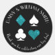 O brilho azul-turquesa falso e os naipes de cartas brancos são circulados por texto personalizável, tornando estes adesivos redondos perfeitos para todos os tipos de projetos e ocasiões. Use-os para etiquetar lembranças para convidados de casamento, para fechar envelopes e muito mais.