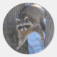 Fazendo uma pausa na hibernação de inverno, um guaxinim é pego balanceando entre troncos de árvores.