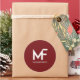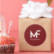 Logotipo MuslimFoodie em branco sobre fundo de marrom sólido.