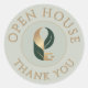 Adicione um toque final sofisticado aos seus presentes de open house, sacolas de brindes, envelopes e embalagens do dia da entrega das chaves com este adesivo redondo "OPEN HOUSE / THANK YOU" inspirado no luxo. Projetado em uma paleta refinada de sage e dourado com um layout circular limpo, ele eleva instantaneamente a apresentação, mantendo a mensagem calorosa e profissional.
