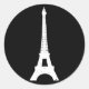 Uma ilustração simples e clássica de uma Torre Eiffel branca sobre um fundo preto decora este adesivo.