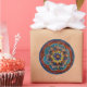 Design de mandala colorida pintada manualmente - azul, ouro, roxo, laranja, amarelo, verde.