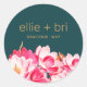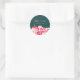 Adesivo redondo elegante com magnólias rosa vintage coloridas brilhantes.