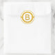 Este autocolante monograma pode ser utilizado para um selo de envelope, um rótulo de presente personalizado ou para outras ocasiões. Este adesivo personalizado tem uma inicial dourada ou amarela escura sobre um fundo de branco com uma borda circular. A inicial no meio pode ser facilmente personalizada para uma letra de sua escolha.