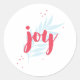 Um adesivo personalizado com texto "Joy" e ilustração festiva.