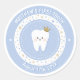 Condecorações personalizadas do primeiro dente. Um adesivo azul-bebê com dente fofo, nome editável e data de marco. Visite o compro para ver toda a primeira coleção de dentes.