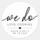 Adesivos Redondos de Adoramos Cookies são perfeitos para adicionar às caixas/sacos de lembranças para os convidados levarem para casa um lanche após a recepção de casamento.