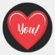 Amo-Te! Este adesivo vermelho-torto apresenta um coração vermelho brilhante em um fundo preto sólido. O texto "Você!" pode ser personalizado para torná-lo seu.