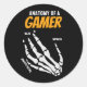 Adesivo divertido de gamer com a mão esquelética com referências de teclas do teclado.