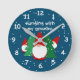 Andando com meus fantasmas, engraçado relógio de Natal. Relógio personalizado com desenho animado de Holiday. Cor de fundo personalizável. Ideia divertida de presente de decoração de Natal para cozinha, escritório e outros quartos. Versão quadrada ou redonda. Adicione sua cotação ou nome personalizado. Ilustração de troll vermelhos com árvores verdes de Natal e neve.